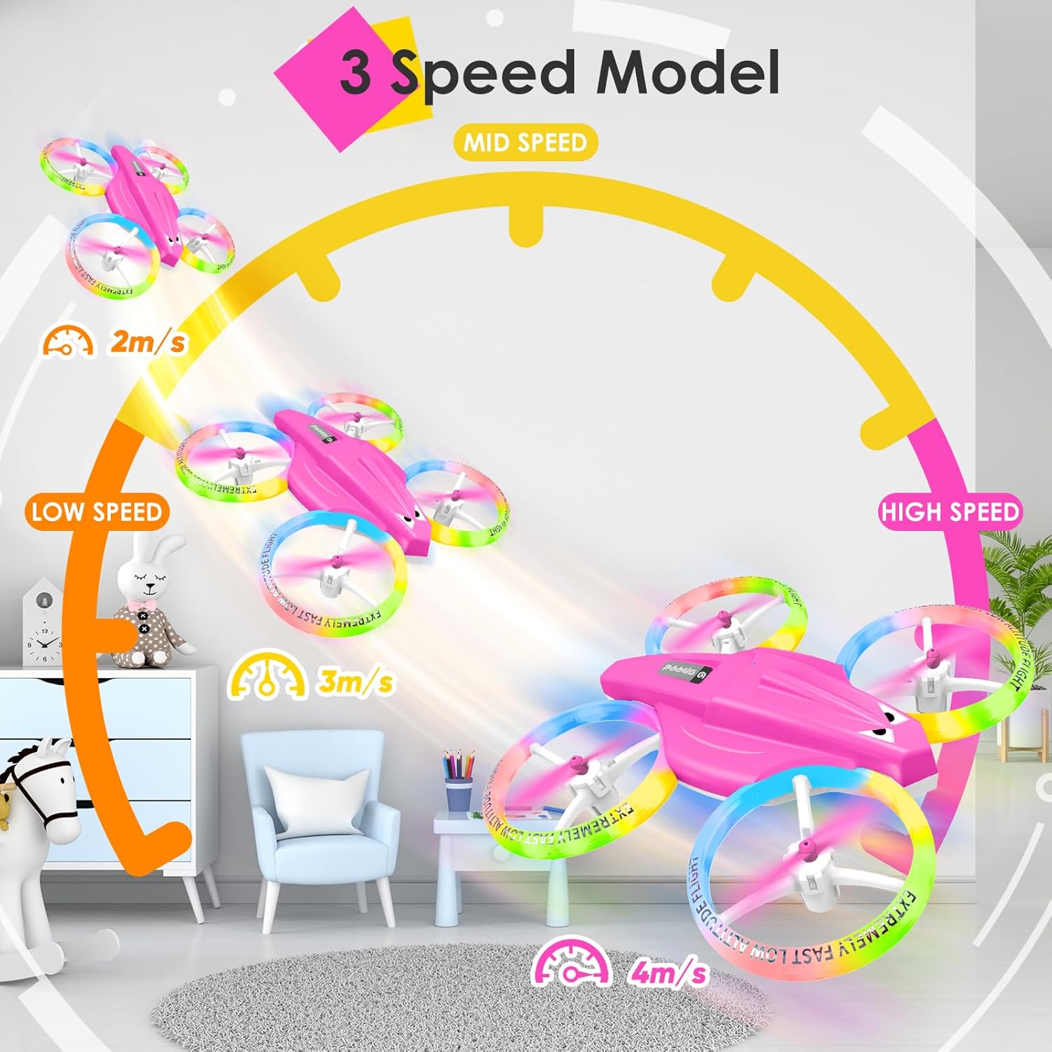 3 Different Speeds of This Drone Allow Children to Learn to Fly at Their Own Pace Without Easily Colliding with Other Objects