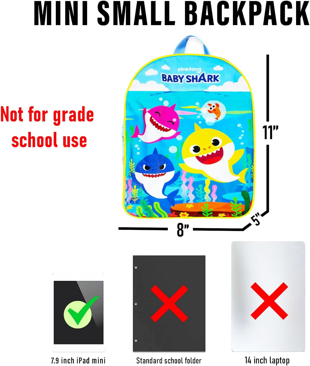 This Baby Shark mini backpack set for kids comes with one 11″ Baby Shark school backpack with adjustable shoulder straps, top loop for hanging, and beautiful design featuring Baby Shark!