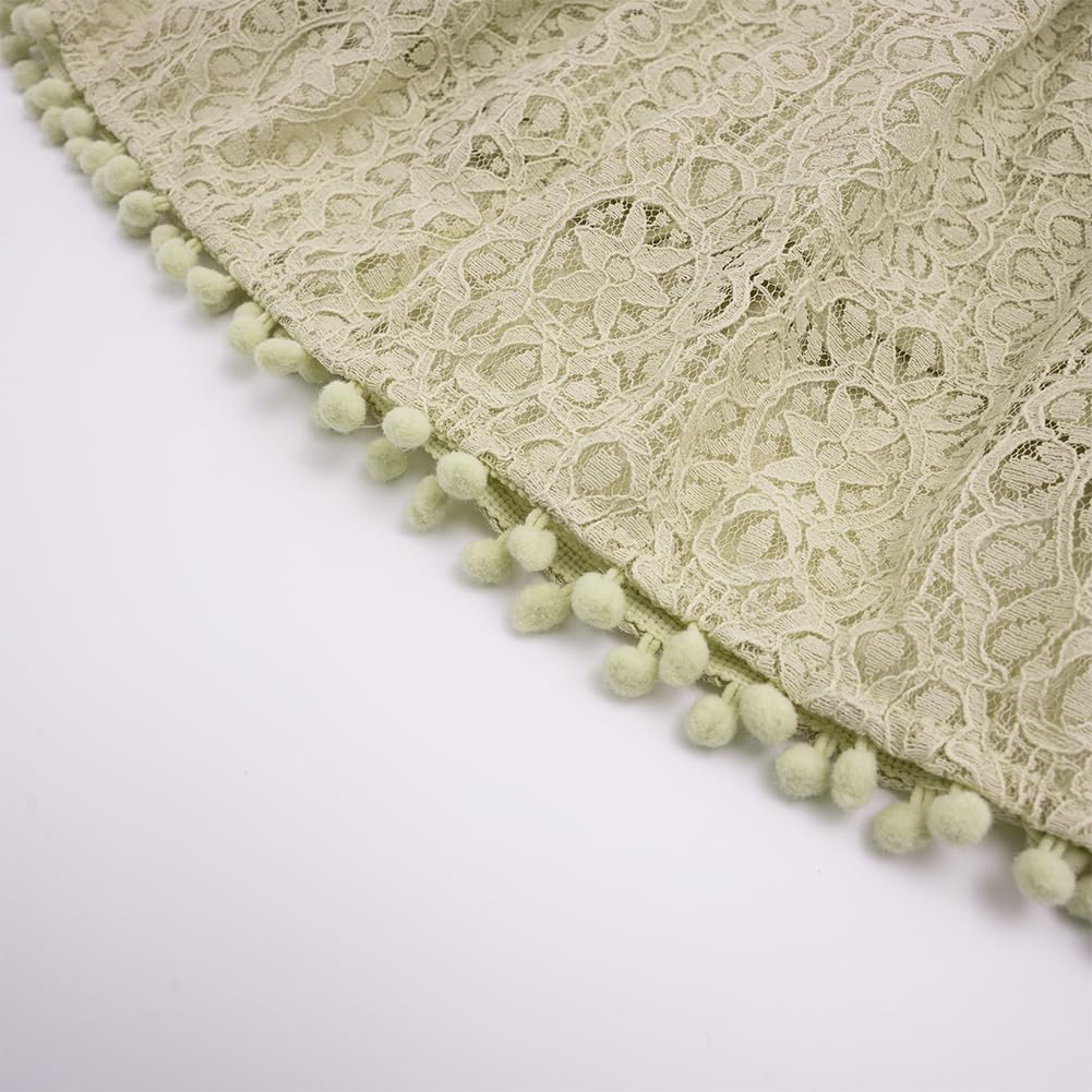 More details:layer lace with delicate hollowed pattern design,the dress bottom decorated with pom pom, Zipper closure, knee length.