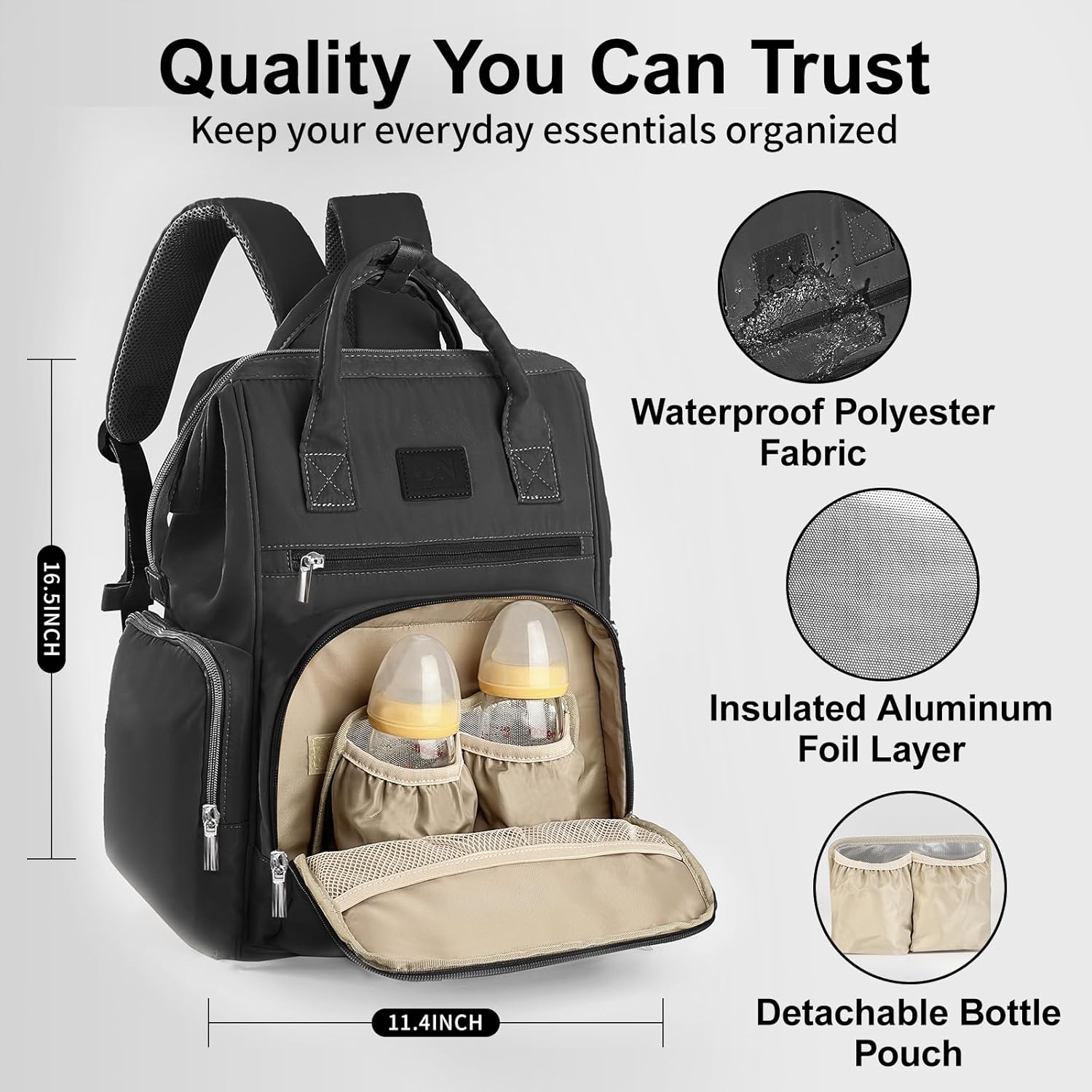 1. Durable Insulated Travel Friendly Diaper Bag: The BN diaper bag backpack features a standard insulated bottle pocket and 6-layer thermal aluminum compartment with heating pad. Perfect for mothers traveling, this diaper bag features a heating pad that connects to a power bank to keep milk warm for up to 4 hours or warm up baby wipes and clothes when needed