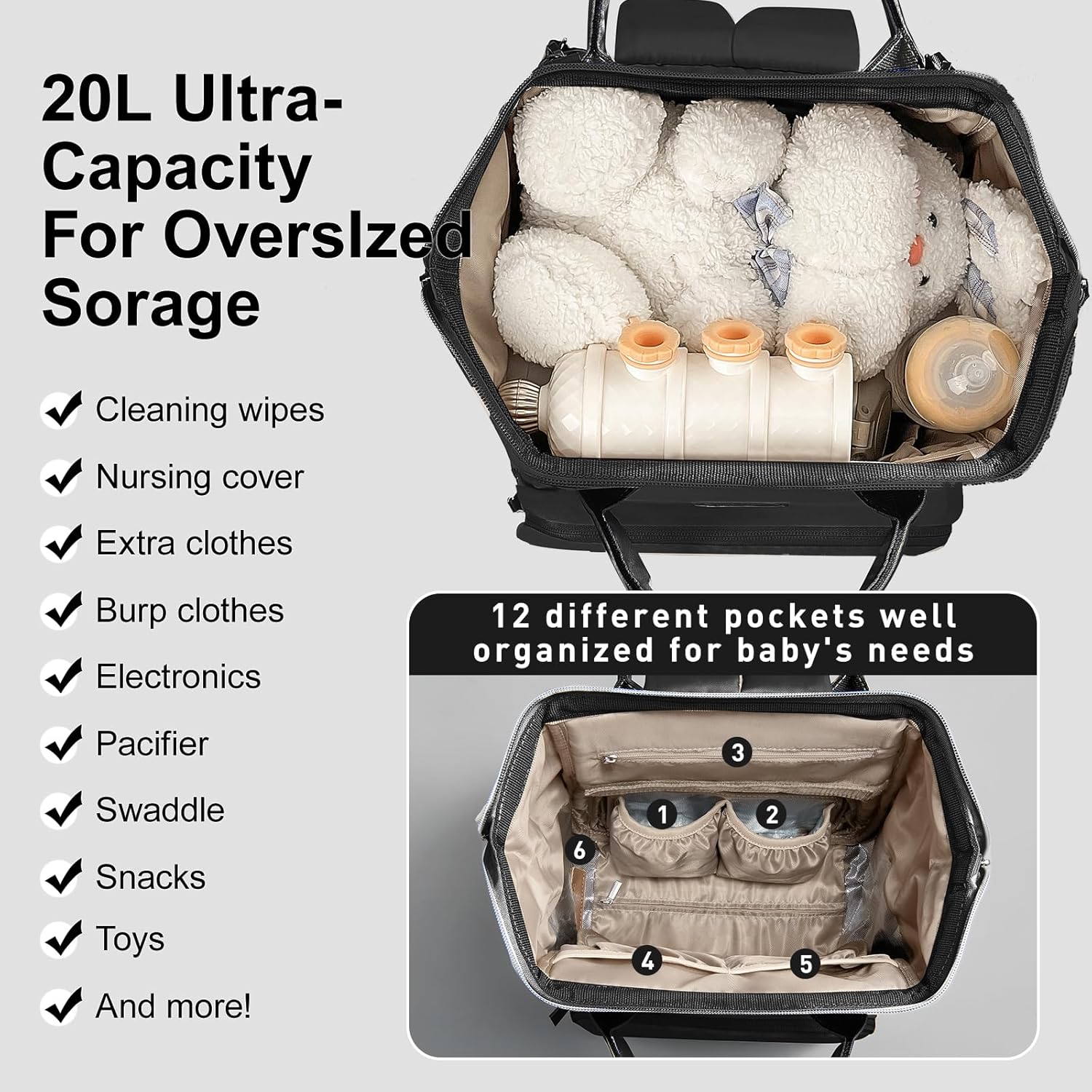 The Expansive Capacity of this diaper bag backpack Elevates Your Journey, Allowing You to Neatly Sort and Easily Locate Your Items, Ensuring a Seamless and Well-Ordered Adventure. With Everything in Its Place, Your Travels Become an Effortless Symphony of Convenience and Clarity!