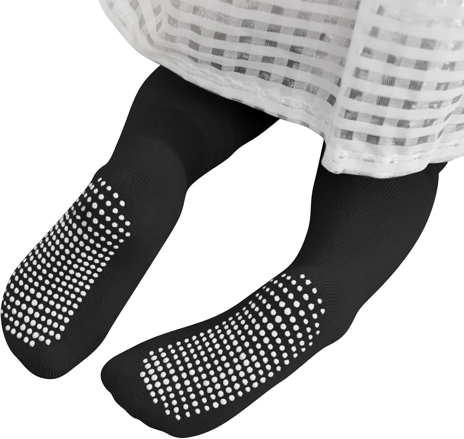 MATERIAL: Our baby tights are made of cotton,polyester and spandex to keep the socks soft, safe for your little girl tender skin.NON-SKID GRIP DESIGN: Strong grips at the bottom covers the whole foot from heel to toe.FEATURE: Non-irritating seamless toe provides a smooth, invisible feel that protects kid’s sensitive feet,Give your Newborn Baby/ infants/toddlers a cozy, warm and comfortable feeling.OCCASIONS: Baby girl tights perfect for cute tops, tunics, under skirts, dresses, school uniform.They are perfect for wearing to parties, events, holidays, church, for family portraits, dancing and more.