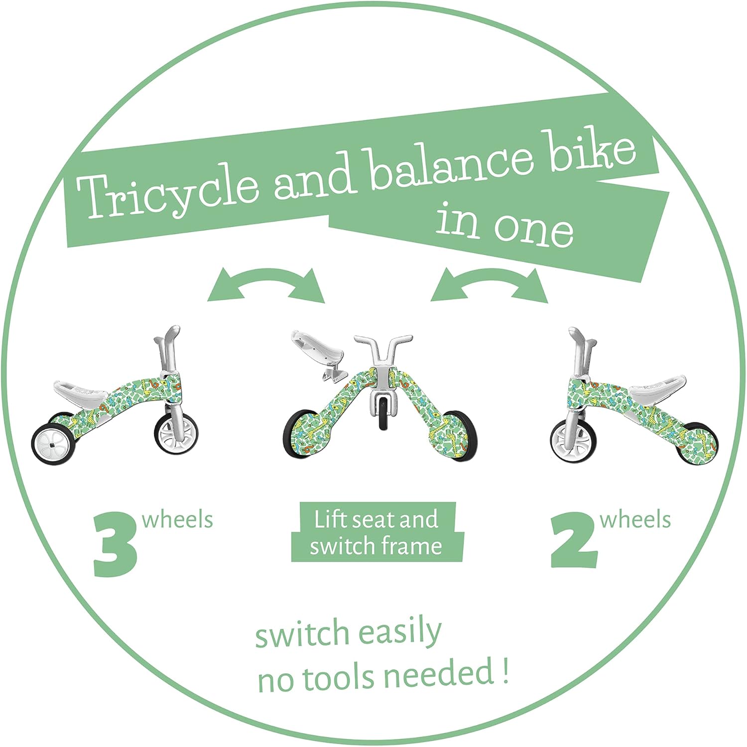 SWITCH QUICK AND EASY: Easily switch between 3-wheel tricycle mode and 2-wheel balance mode without tools, whenever you child is ready – the best way to teach your child balance at his/her own pace.