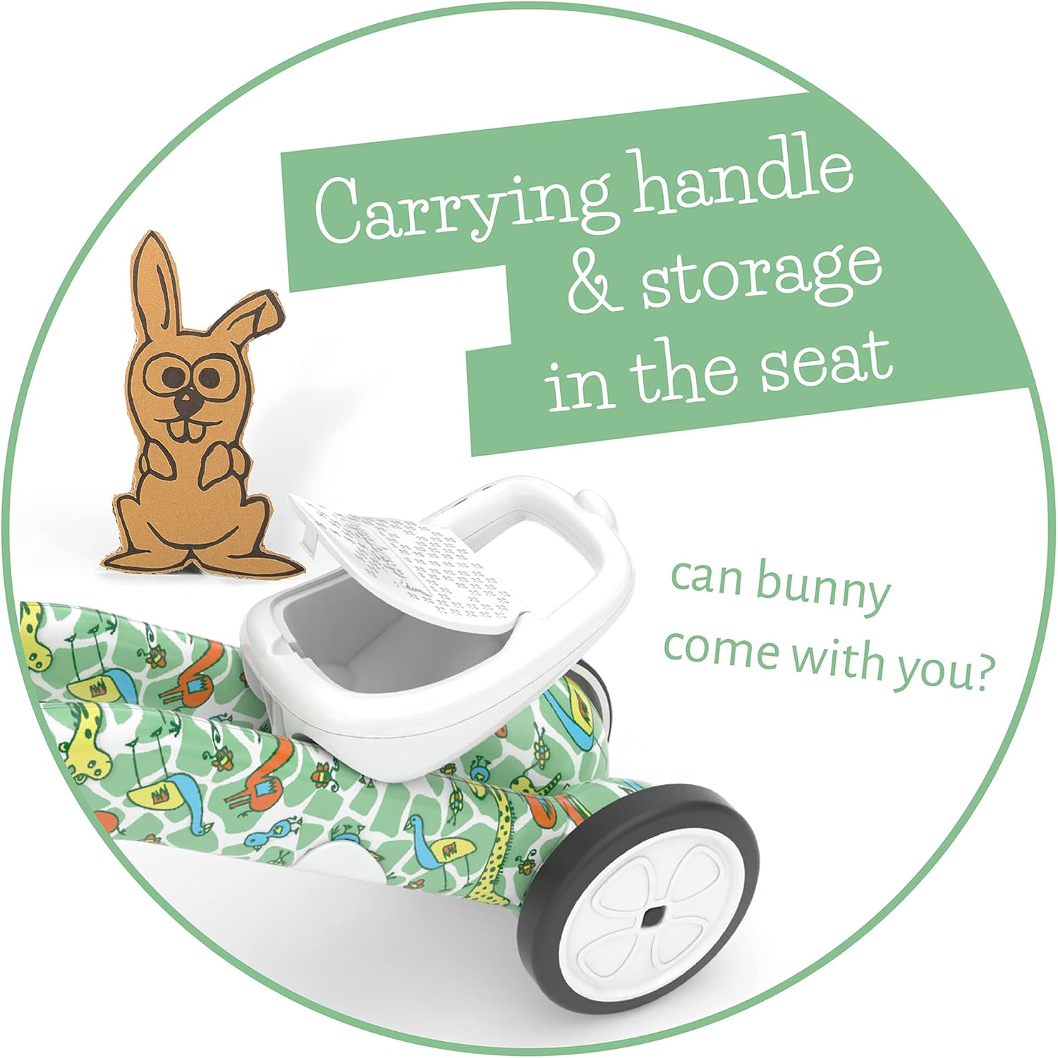 Artists are no warmakers, artists are no lawmakers. Artists are the peacekeepers and the Storytellers that make us think about our world. Artists can bring some unseen light to shaded places. At Chillafish we think we need more peacemakers for the sake of our future generations. That’s why we set up our ‘fabulously artistic designs’, program to send out a message of artists around the world, through our product innovations and brand, thus promoting their work on a global scale. Every now and then Chillafish will launch a special limited FAD-edition of one of our products. This edition features illustrations of a fabulous artist that we think deserves some special attention. The Chillafish Bunzi 2-in-1 gradual balance bike and tricycle is uniquely designed to help teach your child balance at his own pace in a fun way. Your child learns to balance step by step on 3 wheels and when it’s ready, on 2 wheels. Made of high-quality ABS material, the frame can switch between a 3-wheel mode to a 2-wheel mode in just a few seconds; no tools required. The back wheels in 3-wheel mode still offer more stability, but are purposely close to each other, hence less stable than a traditional 4-wheel ride-on, so your child feels in control of his own balance. The seat grows with your child (8.7 inch / 22 cm in 3-wheel mode to 9.8 inch / 25 cm in 2-wheel mode). Only in this way the new skills of your son or daughter can be better supported, just until he or she has mastered balance and is ready for a bigger balance bike like BMXie² or Charlie. The silent anti-skid synthetic rubber tires are non-marking; so no worries when your toddler wants to ride inside the house. But the material of the tires is also strong enough to be used outside and to survive the wildest outdoor treks. The Bunzi is made of a very lightweight high-quality ABS material (4,16 pound / 1,8 kg), which makes it easy to carry around thanks to the handgrip built into the back of the seat. You can easily bring the Bunzi on all your child’s trips and adventures. Your child can bring along a toy or snack for the ride in the hidden storage box. Your son or daughter will love it and it’s at the same time also very useful to train the fine motor skills of your lovely toddler. With cute bunny-style handlebars, an intuitive form that grows with your child and vibrant colors to display the personality of your child, The Chillafish Bunzi is sure to become the preferred bike buddy for your kids; recommended for ages 1-3, maximum weight 55 lbs (25kg). Bunzi is being sold worldwide for 7 years already and most parents have this little Bunzi in the family for many years, giving it to little sis or bro after the first use. You can’t lose the tool, as there are no tools needed, Bunzi arrives assembled in the packaging and the seat adjust without any tool. Chillafish has a wide experience when it comes to balance bikes and all sorts of wheeled toys and is determined to bring the Chillafish values to the wide world. Entering the households of more than 1 million people makes us experts in creating fun, innovative and sustainable toys ! PLAY LONGER !