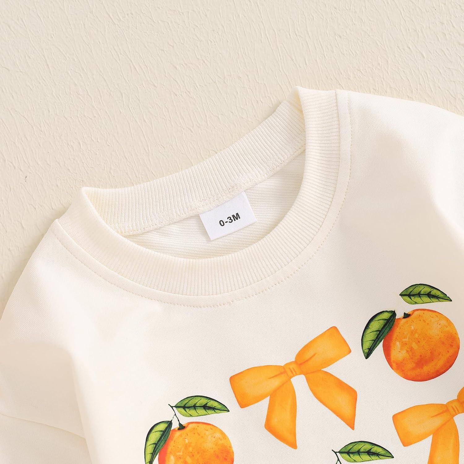 Baby Girls Romper, Long Sleeve Crew Neck Orange Bowknot Print Bodysuit Clothes for Casual Daily
