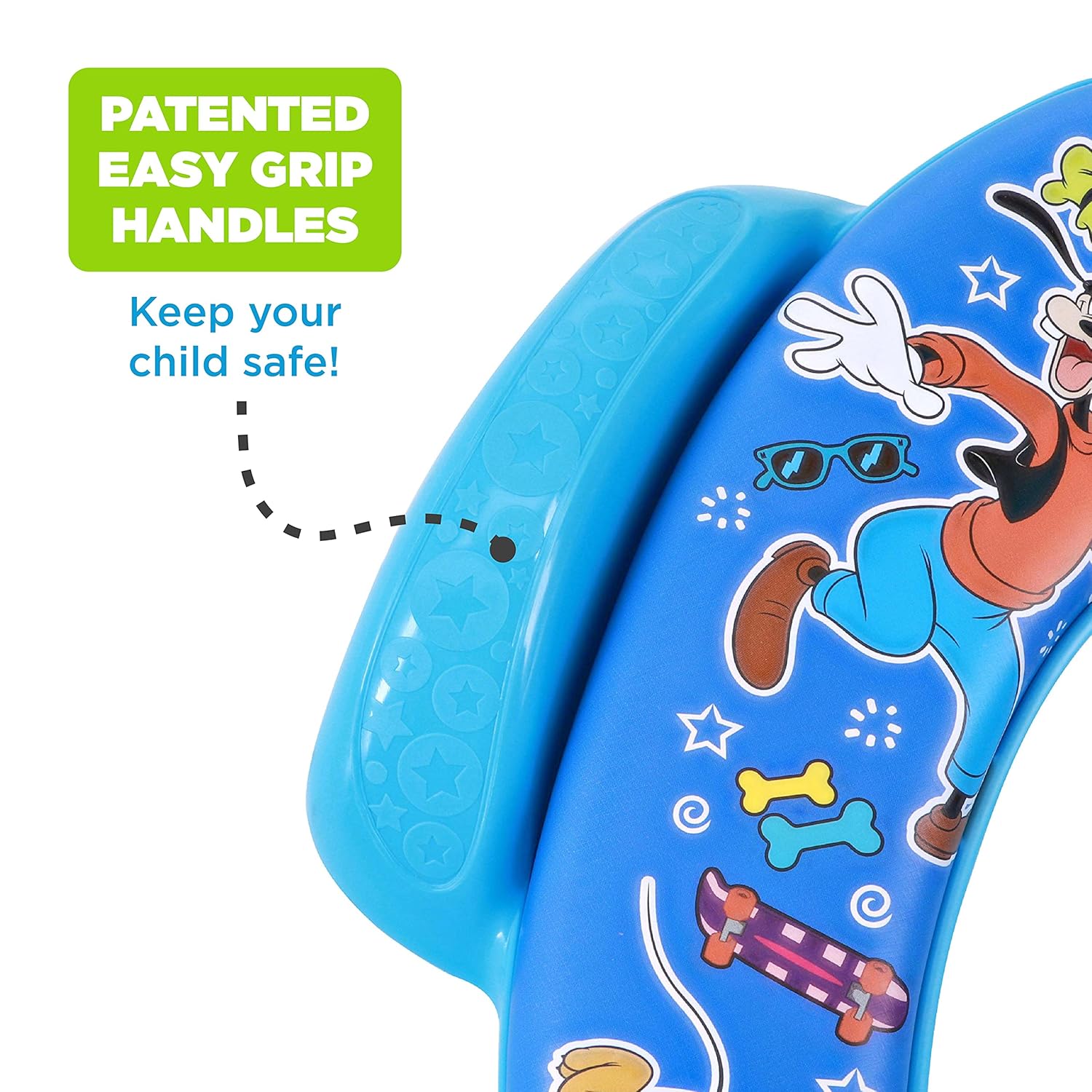 There’s no better way to encourage your little one to start using the adult toilet than by enticing them with their favorite characters! Featuring the classic Mickey Mouse, this Soft Potty Seat is Made in the USA with durable plastic and built to last. The Patented, Easy Grip Handle design helps your little one feel safe & secure on the toilet and aids in building independence throughout the potty training process. This soft, cushioned seat is a welcome alternative for children to use versus hard plastic ones. Also included is an easy to install, soft, contoured splash guard that redirects unwanted splashbacks that may occur during potty training. All components come apart for an easy clean that gets every inch. This potty seat fits on most regular & elongated toilet seats so it is ready to use anywhere in the house.