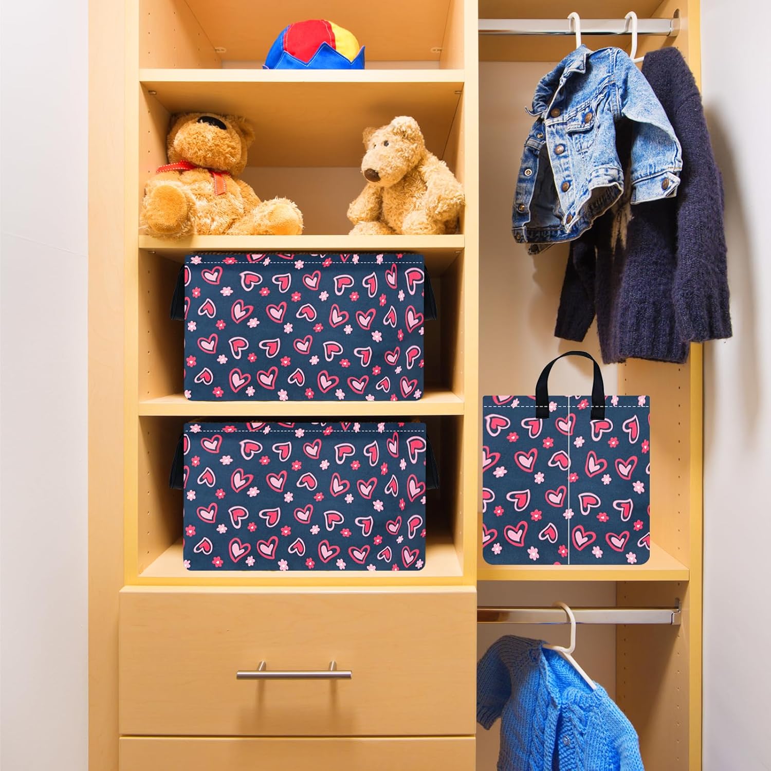 Valentine’s Day Room Decor Heart Print Basket for Kids Toys/Books Box