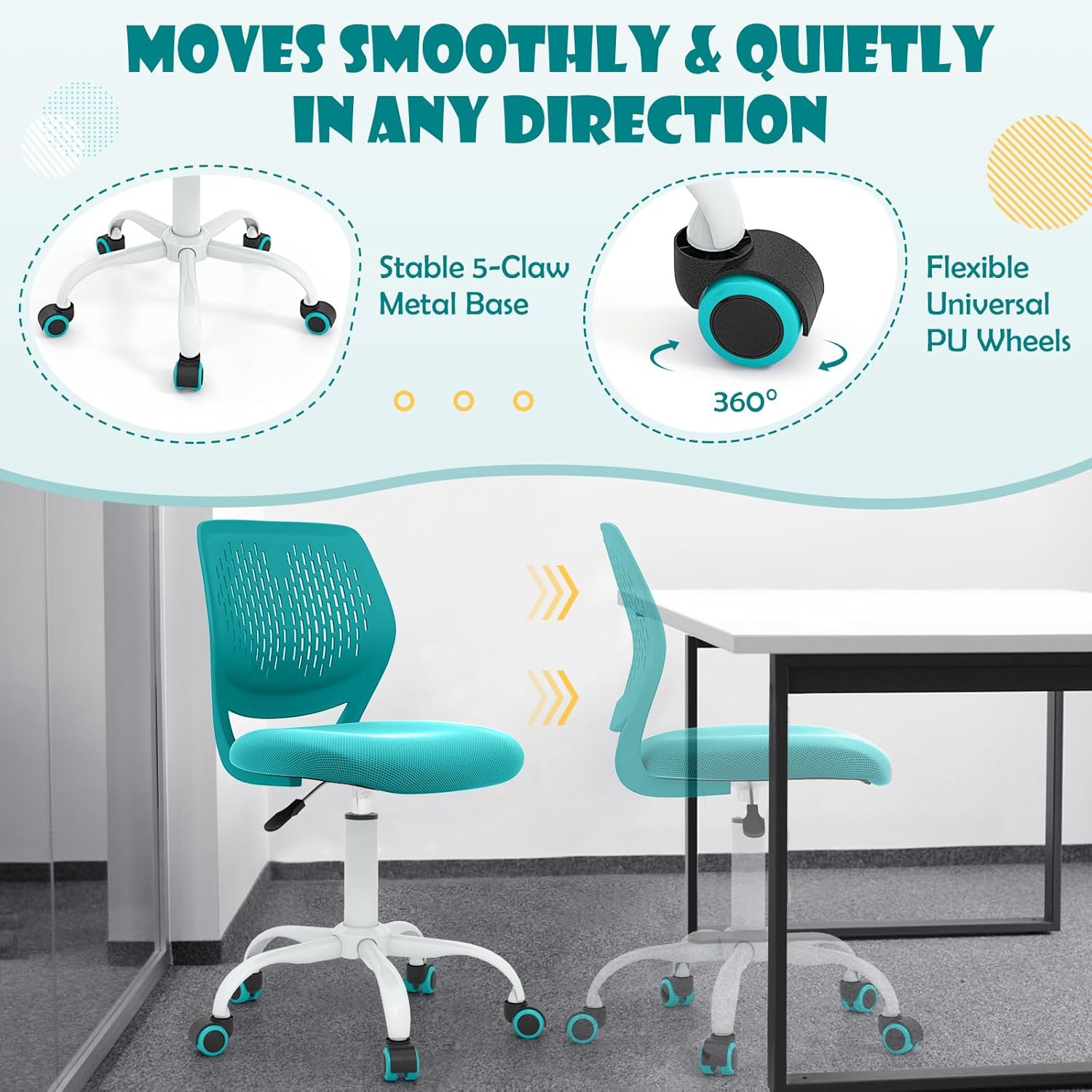 LUARANE Kids Desk Chair, Adjustable Swivel Chair for Children, Armless Mesh Task Study Chair with Lumbar Support, Adjustable Height, Universal Wheels, Rolling Computer Chair for Bedroom, Office