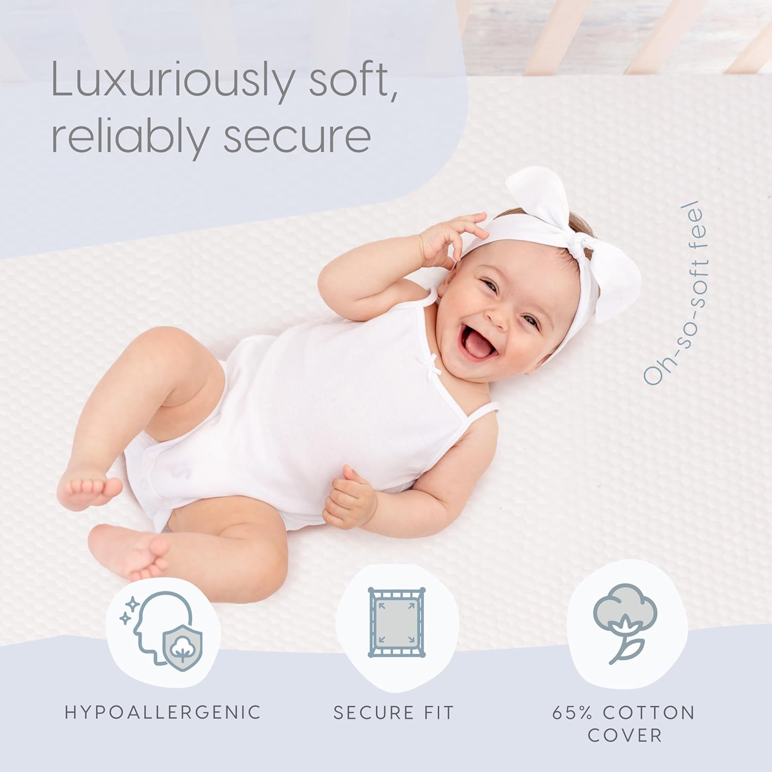 Sleep in Comfort – this topper is designed just like the memory foam toppers on adult beds to provide contouring comfort that’s soft and soothing on tiny bodies and reduces tossing and turning so your little one can get a better night sleep – and you can too!