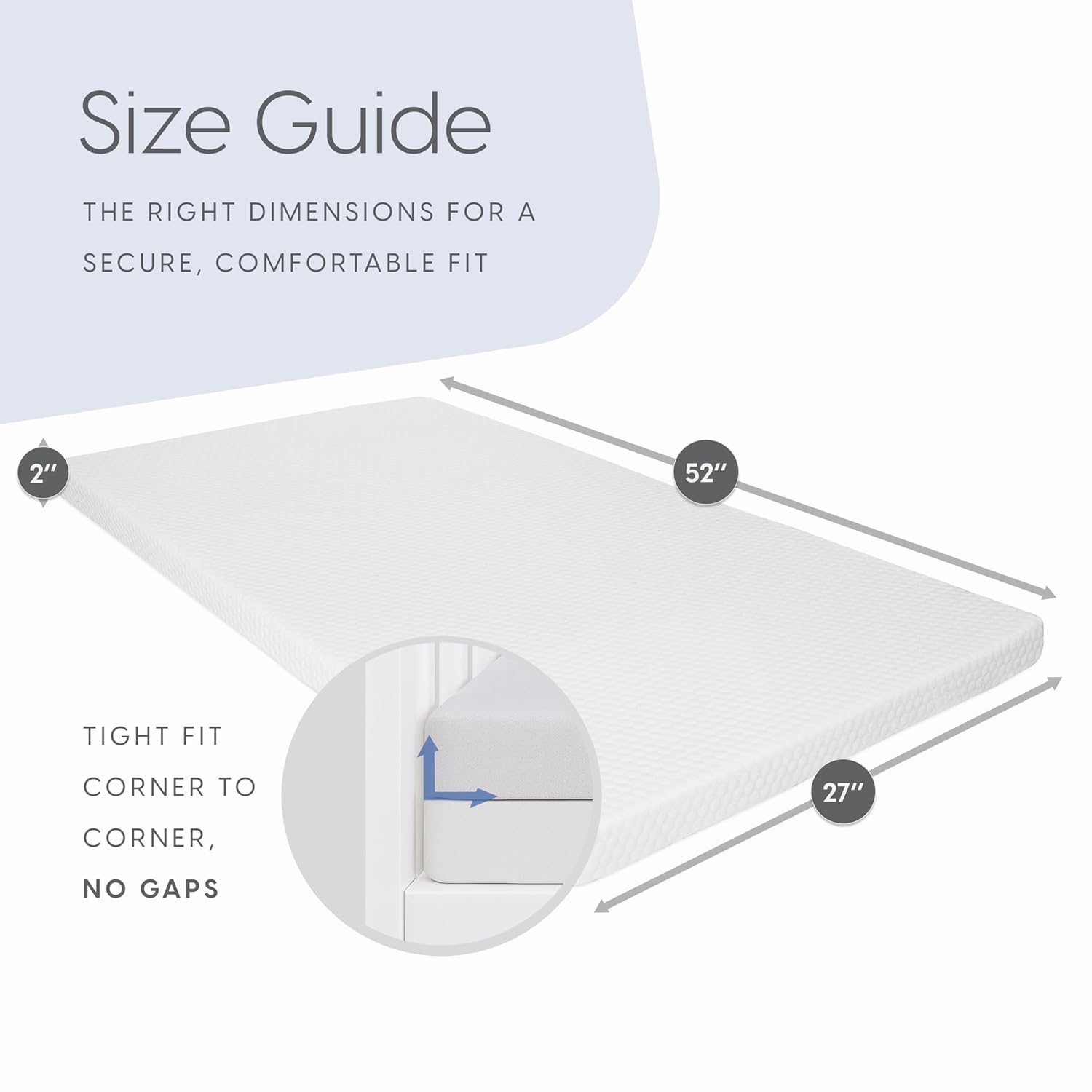More Details – soft topper is not intended for babies. Consult with physician for safety recommendations. Topper measures. 52″ x 27″ x 2″. Please allow 24 to 48 hours for foam to expand after opening.