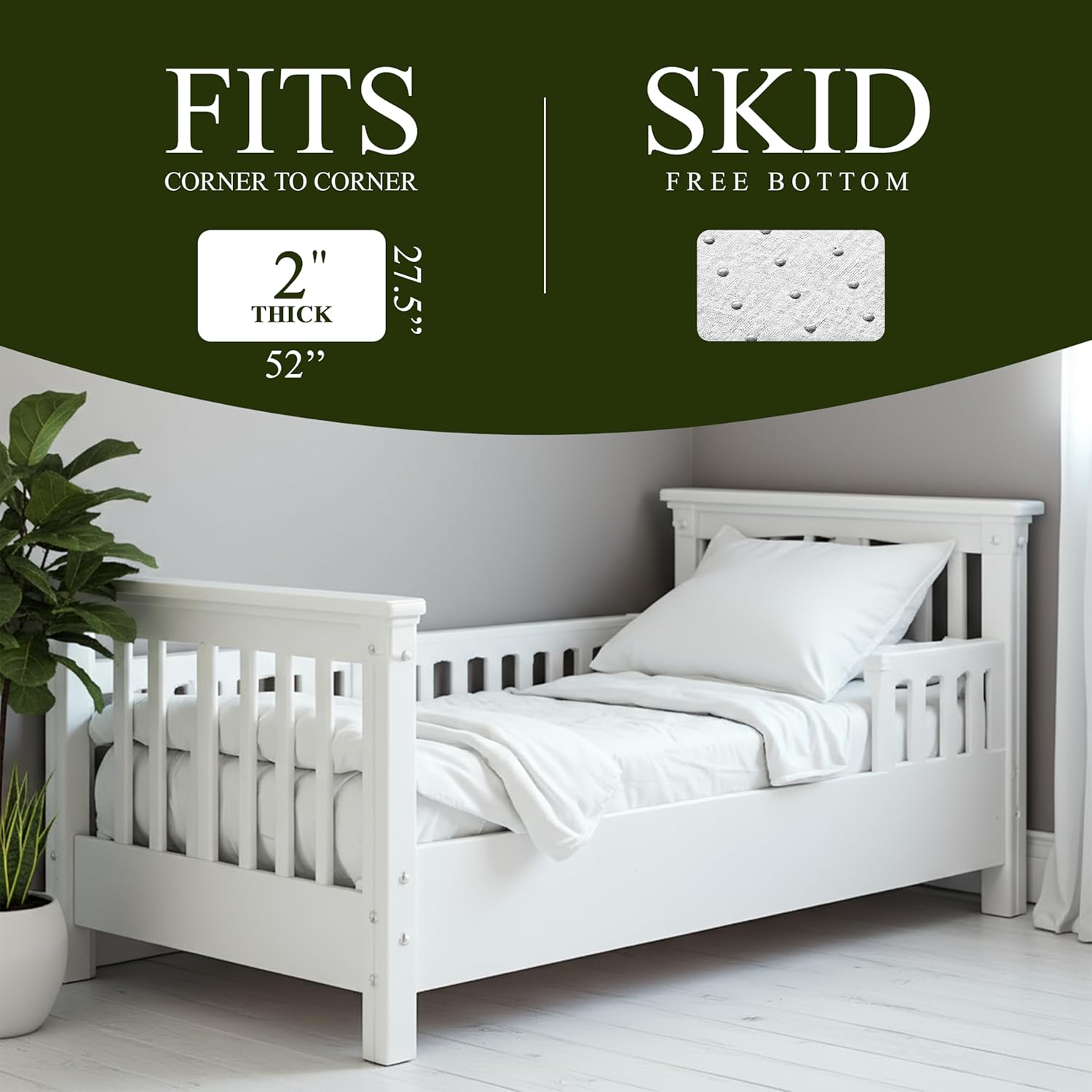 SENSATIONALLY SOFT 2” FOAM CORE | Toddlers Play & Nap Blissfully with the Perfect Balance of Contoured Support & Breathable Cloud-Like Comfort | 2-Inch Thick Toddler Mattress Topper Gently Cradles the Body, Helping to Reduce Nighttime Tossing & Turning & Promote Deeper, More Peaceful Sleep | Super Dense Ventilated Foam Offers Ideal Firmness, While Ventilated Design Keeps Kids Cool