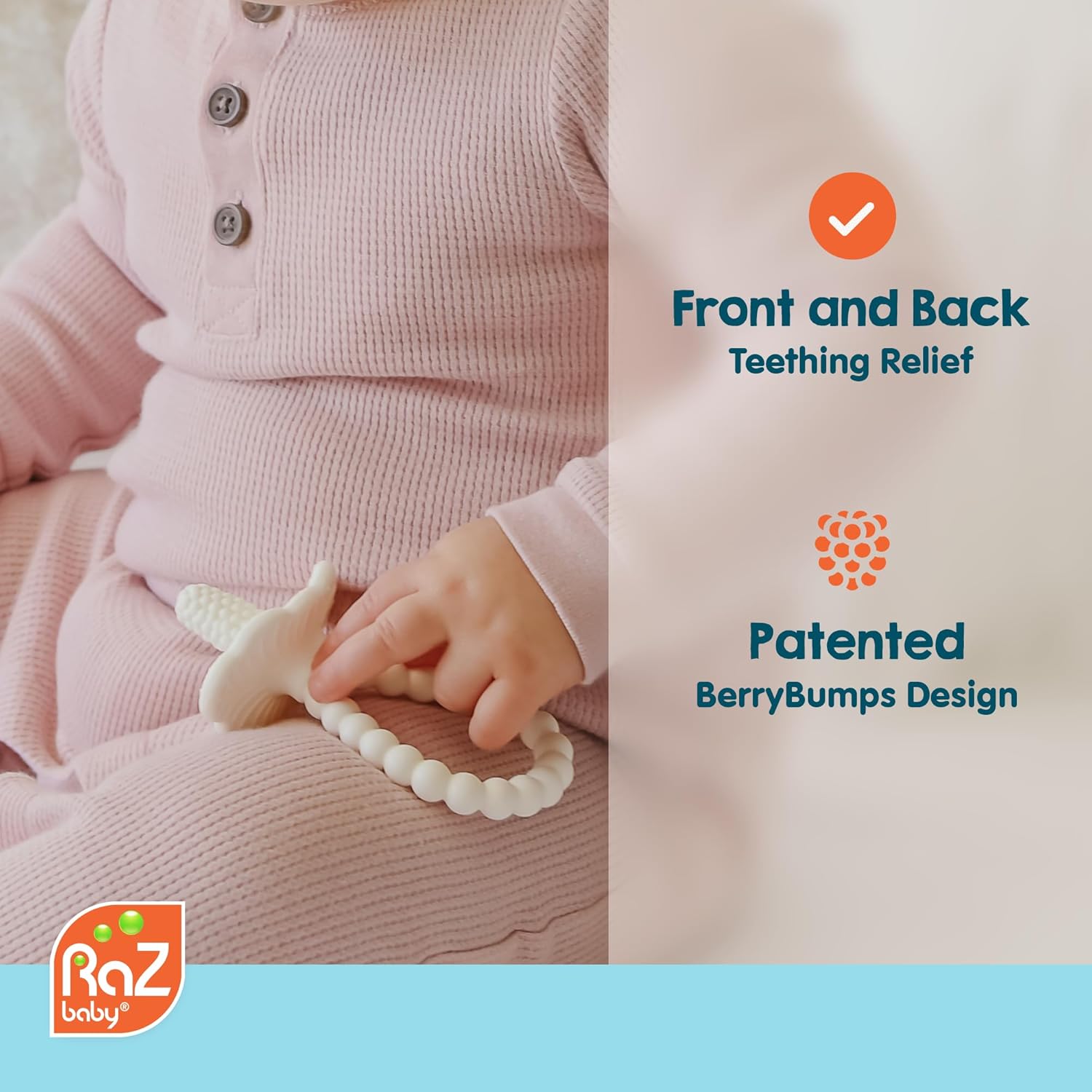 Easy to Clean & Sanitize: These durable teethers are also dishwasher-safe and sanitizer-safe, making cleanup a breeze! Perfect as a baby shower gift for boys or girls.For optimal hygiene and as with all baby toys, sanitize your RaZberry teething toy in boiling water for 5 minutes before first use.