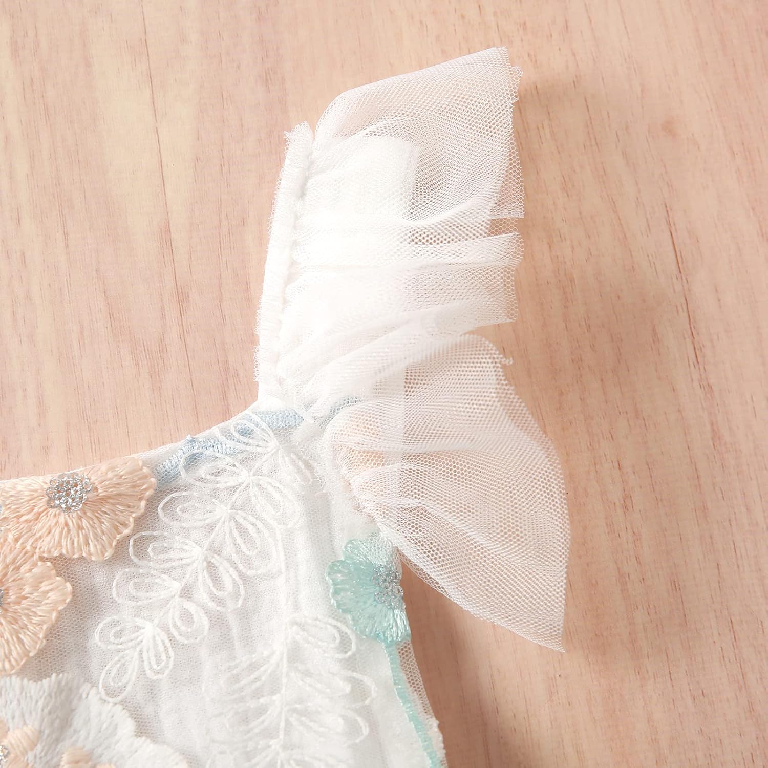 Baby girl summer romper; Baby girl romper dress with mesh patchwork, beautiful tassels, square neck, bubble short sleeves; Bottom button closure, easy to put on and take off; And cute headband set, simple but fashionable, make your baby so cute