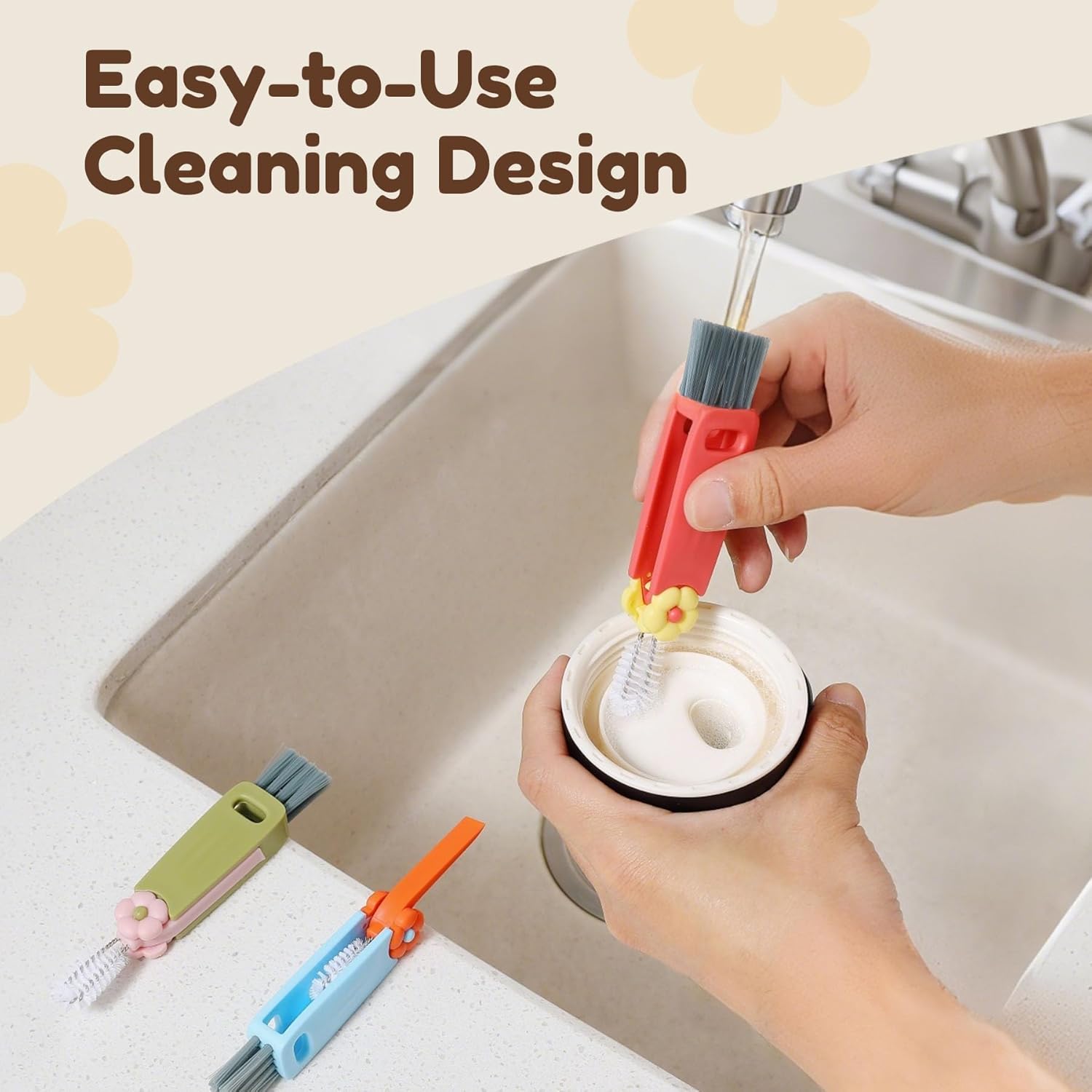 ✅【3 in 1 Multifunctional Cleaning Brush】Our 3-in-1 cleaning brush set offers a range of specialized brushes, including a cup mouth brush, a gap brush, and a corner brush. These brushes have been specifically designed to tackle tough cleaning tasks in bottles, cups, and other narrow spaces.