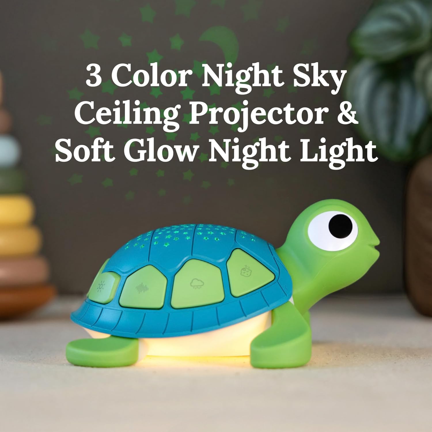 NIGHT SKY CEILING PROJECTOR & SOFT GLOW NIGHT LIGHT: Project a constellation pattern with the turtle projector night light with three colors and customizable projection. Create a calming ambiance with a spectrum of colors. Cast a glow with a night light in the turtle’s belly that won’t disturb sleep. Perfect for nighttime feedings or children who are scared of the dark.